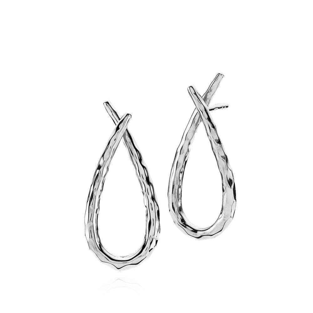 Disse ATTITUDE øreringe kan bruges både med og uden vedhæng. De er designet i sterlingsølv med et banket og råt udtryk.