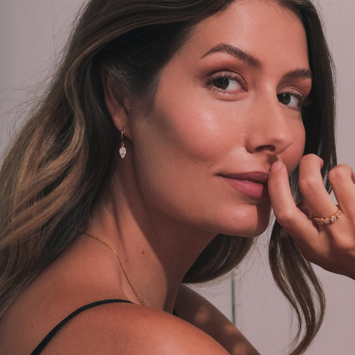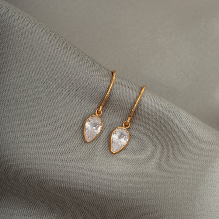 Forgyldt Aya Øreringe er designet med et elegant Zirkon vedhæng. Simpel og elegante Øreringe som passer godt til både fest og hverdag.