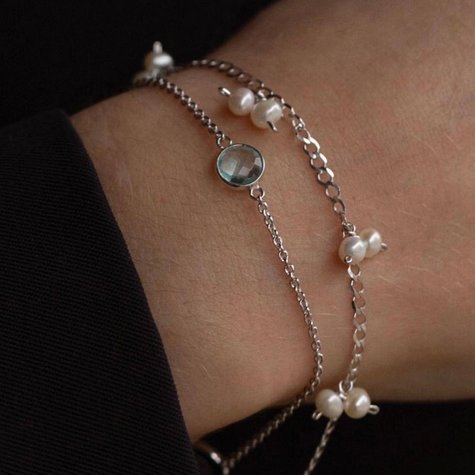 Bracelet from Izabel Camille, made of sterling silver with white freshwater pearls. They can be advantageously combined with matching Mary earrings and necklace from Izabel Camille.